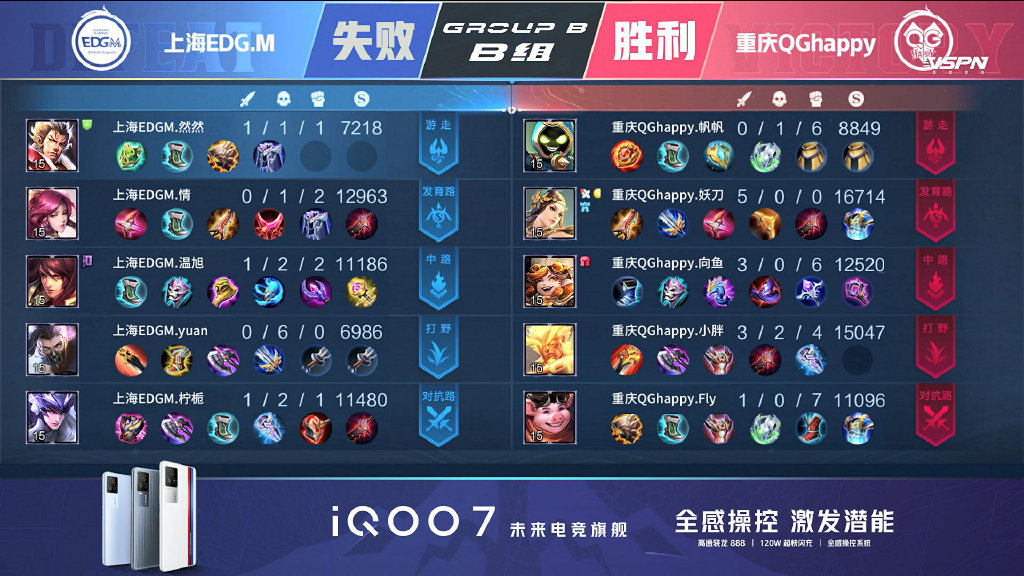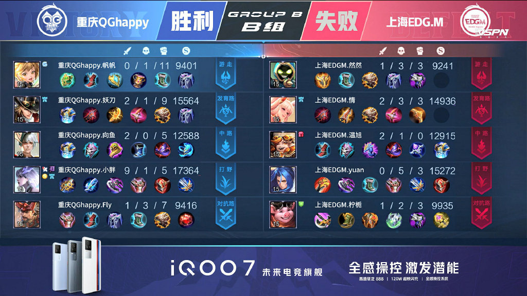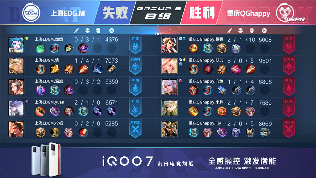 【战报】2021KPL春季赛常规赛第二轮W2D1,重庆QGhappy 3-1 上海EDG.M