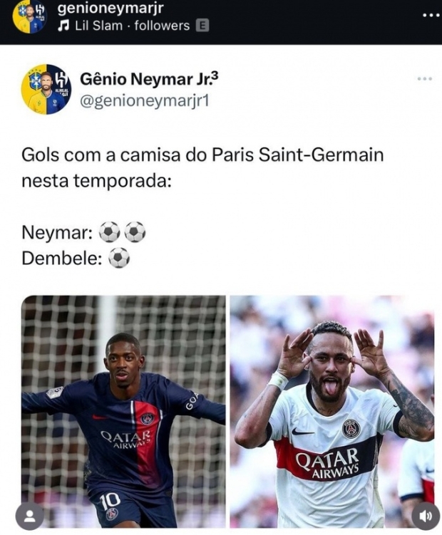 如今,巴黎球迷自然翻出了这条推文,拿它来指责内马尔,目前内马尔效力于巴西的桑托斯,处境平平,毫无亮点,反观登贝莱,已然是金球奖得主。