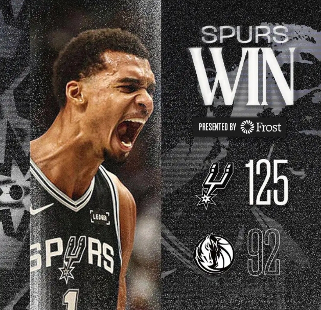 10月23日讯 NBA常规赛,马刺客场125-92大胜独行侠。