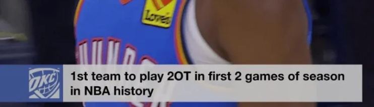 雷霆赛季前两场比赛全部进入双加时,历史首支球队