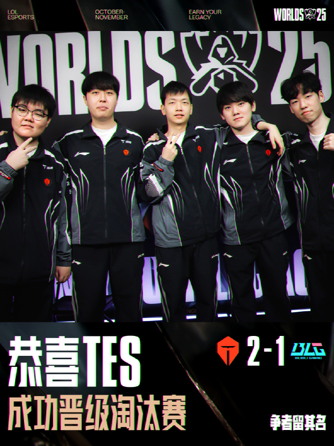 《英雄联盟》2025 全球总决赛(S15)瑞士轮第九日已结束,两支 LPL 赛区的战队迎来内战,最终 TES 战队 2-1 战胜 BLG 战队成功晋级淘汰赛八强,BLG 则遗憾止步瑞士轮。至此,LPL 赛区已有两支队伍被淘汰。iG 在入围赛不敌 T1 无缘正赛,BLG 则在内战不敌 TES 十六强出局。而 AL 和 TES 已经确认晋级八强,其中 AL 全胜晋级,TES 三胜二负晋级。