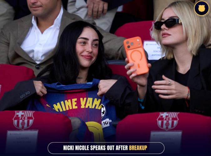 昨天《每日体育报》报道了亚马尔与与女友Nicki Nicole分手的消息,西班牙的狗仔记者Jordi Martín表示尼基也向他证实了这一点,几天前该记者爆料亚马尔在国家德比后前往米兰狂欢,并与绯闻前任过夜。