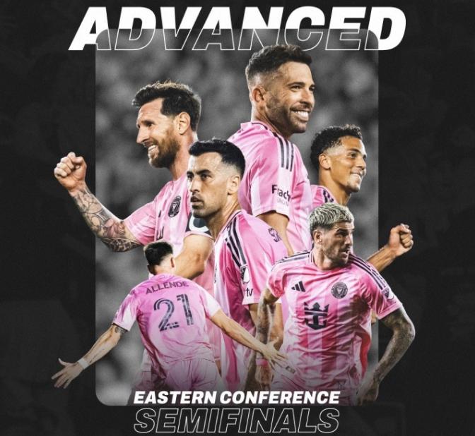迈阿密国际在季后赛首轮三回合2-1击败纳什维尔,队史首次在季后赛中晋级,东区半决赛的对手将是辛辛那提。