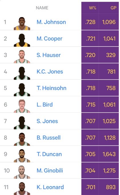 值得一提的是,小卡在加盟快船之前胜率425胜153负(含季后赛),胜率73.5%历史第一,如今生涯战绩626胜268负,胜率70%,已经跌出胜率前10。