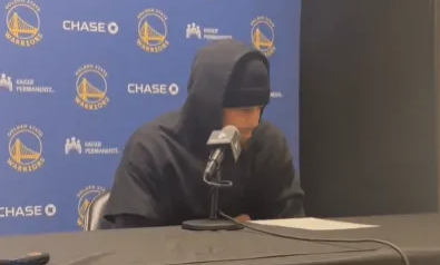 NBA常规赛,勇士120-107战胜篮网。赛后,斯蒂芬-库里接受了记者采访。