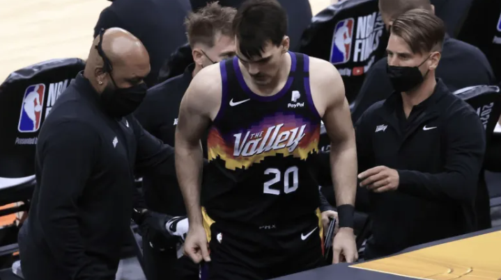 沙里奇曾在2021年NBA总决赛首战中受伤:那次他在一次跳停落地中右膝受力不当,随即被搀扶离场,之后确诊为右膝前十字韧带撕裂,直到22-23赛季才复出