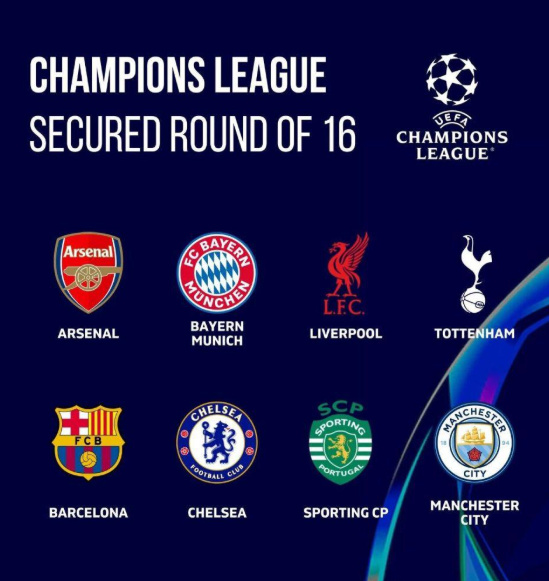 欧冠联赛阶段最终结果:枪手领衔8队锁定16强 曼城巴萨末轮进前8