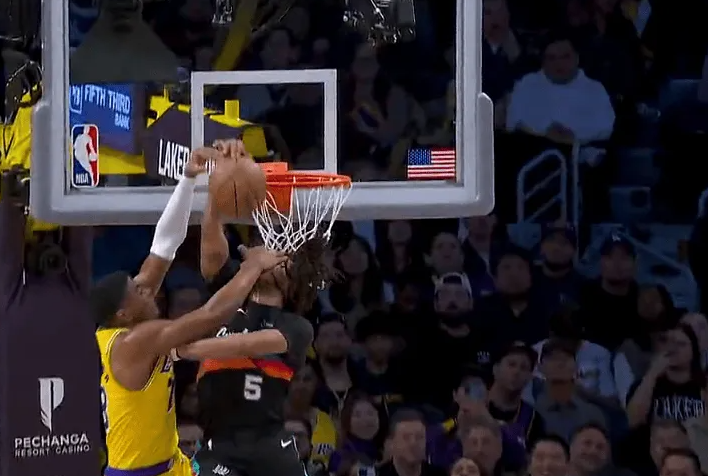 第二节比赛中,卡斯尔残暴大帽八村垒,落地后摔到后腰自行走回更衣室。