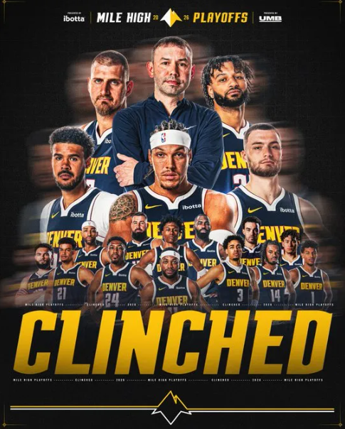 随着太阳输球,掘金也正式锁定了季后赛席位。
