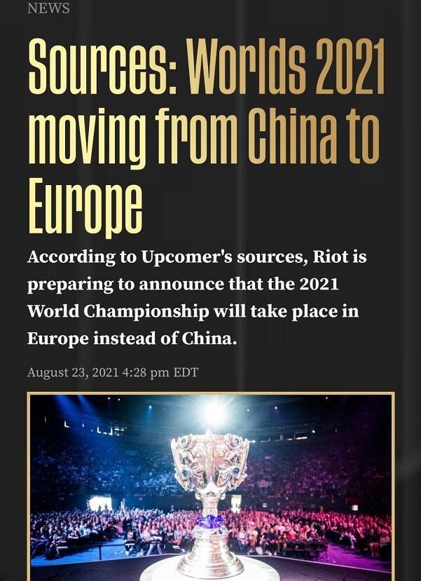 这一消息随后也得到了韩国媒体Daily Esports的证实:“世界赛的举办地已经从中国改为欧洲是事实,这个决定是今天一大早做出的。虽然世界赛的举办地改到了欧洲,但还并不了解改到了哪个地区。”