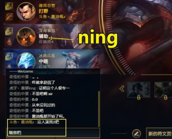 好巧不巧,刚开又遇见Ning王辅助补位,酱油瓶直接在聊天框中直言这个人连续演了他两把!ning王没理他,这把有人秒了~