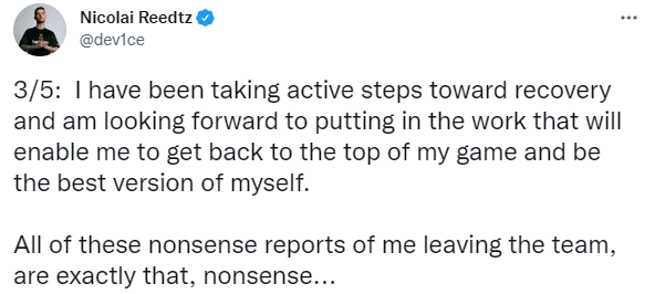 昨日,CSGO各路媒体纷纷爆料了device有意愿离开NIP回归Astralis阵容的消息,面对近期休息的质疑以及各种爆料,今日凌晨device在推特上现身说法回应了那些媒体爆料。