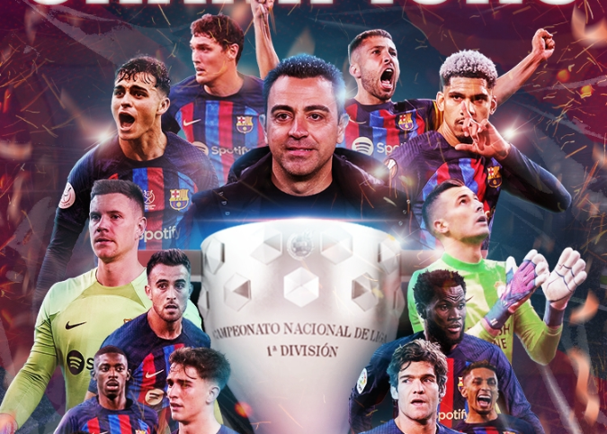 5月15日讯 巴萨战胜西班牙人,提前四轮锁定2022/23赛季西甲冠军。