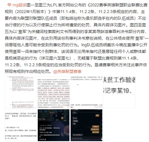 当晚Ale在直播英雄联盟游戏时,有朋友提醒他因为微博的评论被喷了。蜂鸟电竞Ale微微一笑,表示不用理会,并称攻击他的RNG粉丝为“皇军”。相信大家都知道这个词指代的是什么内容。于是有RNG粉丝收集了相关案例,请求联盟处罚Ale。