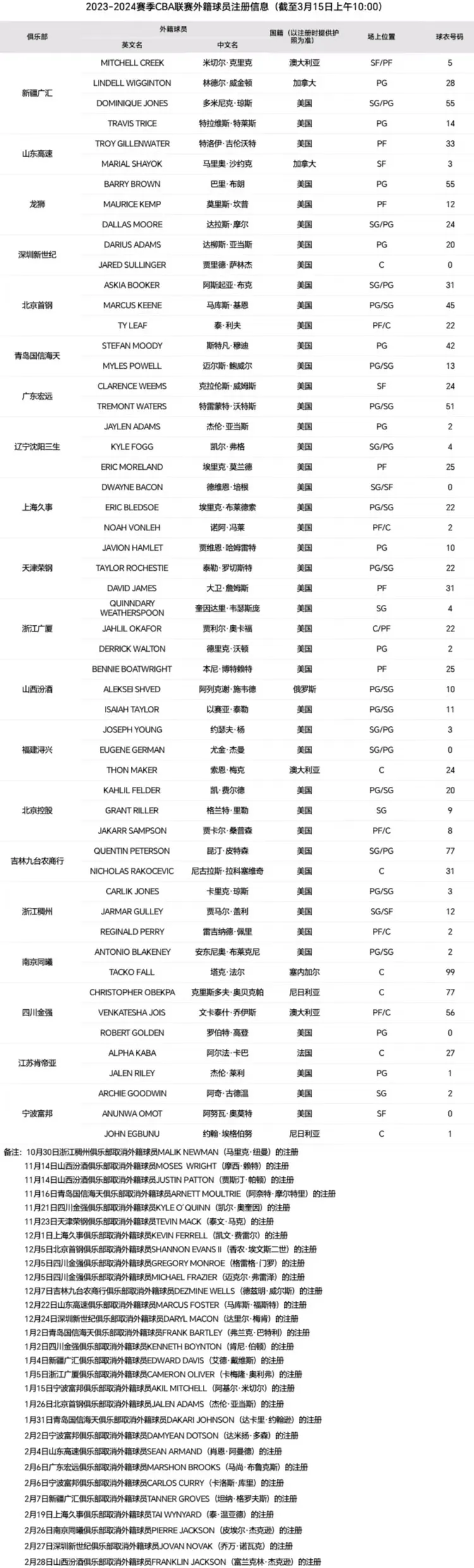 03月15日讯 CBA官方更新外籍球员注册信息,辽宁成功为新援杰伦-亚当斯注册,而广东新援乔丹-贝尔尚未注册成功。