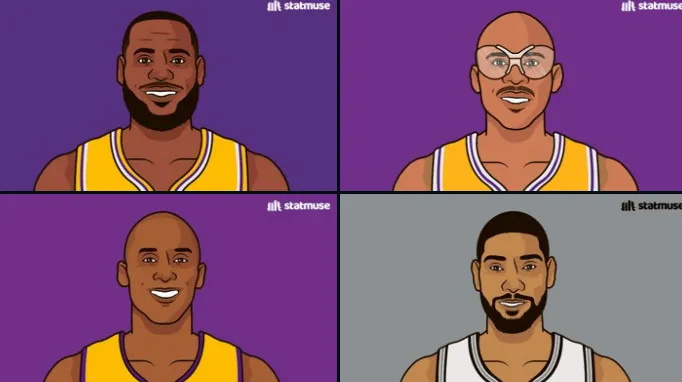 07月20日讯 今日,美媒数据统计媒体StatMuse更新动态,统计了历史上入选全明星和最佳阵容次数最多的球员排名: