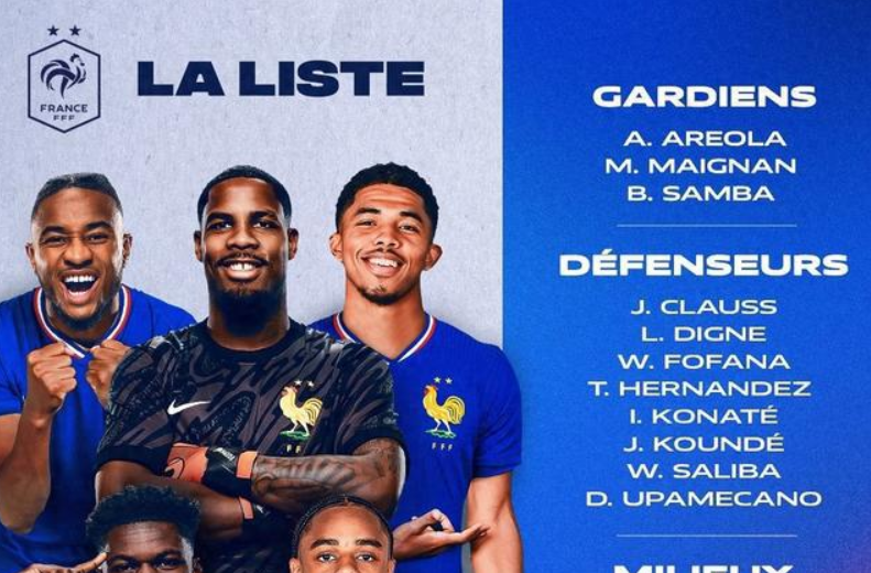 法国队新一期名单:姆巴佩、坎特缺席,恩昆库、登贝莱在列